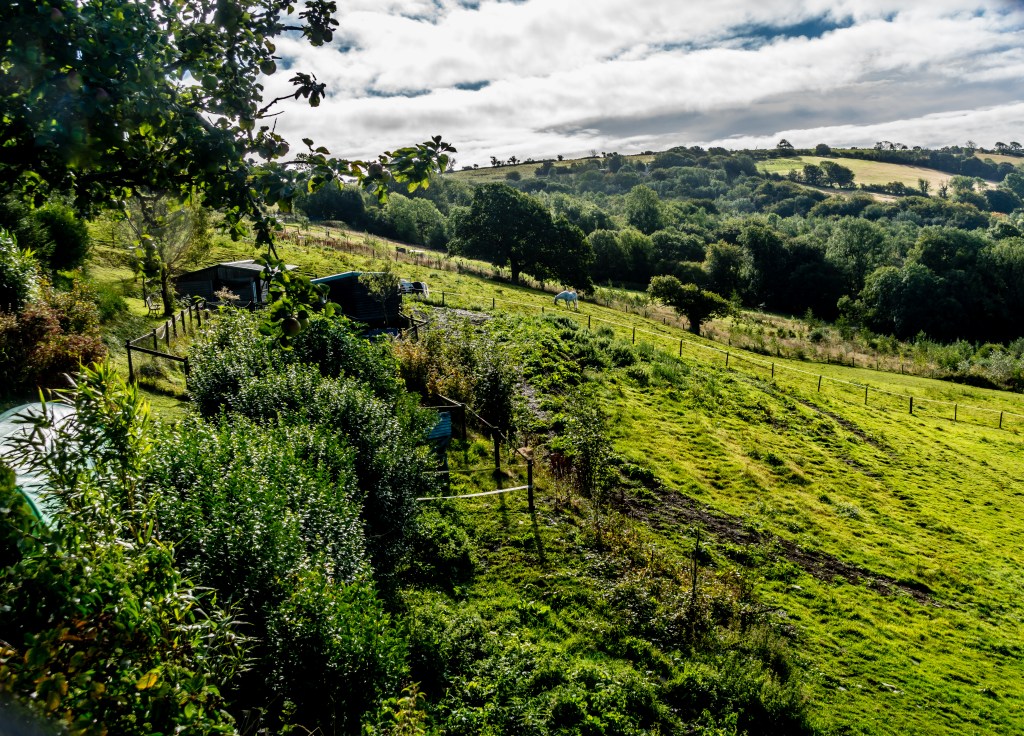 Leelo went to her dog sitter as my mother decided that it was the least stressful option for all of us. The car was packed and we set off to Tegryn. The route took us from the Severn Valley along the Teme Valley, past the few remaining hop field and into Herefordshire with its apple and pear orchards and cider mills. Then through the Welsh Marches with parklands designed by Capability Brown, over the border into Wales with the Brecon Beacons rising up in the distance.