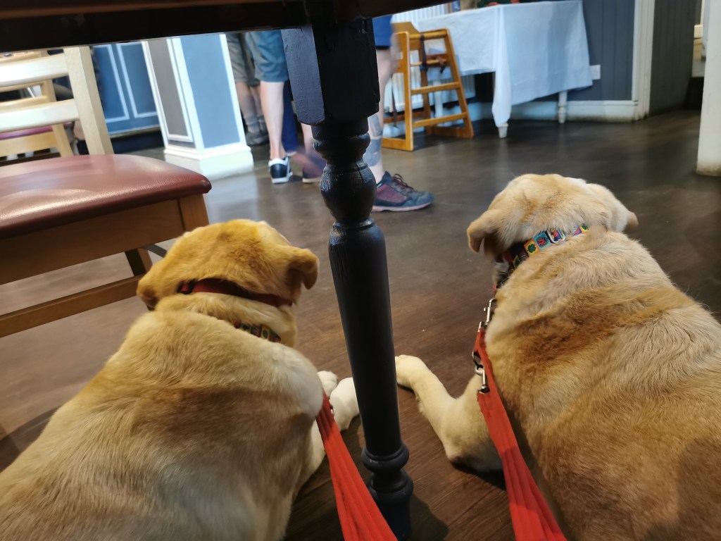 It was soon pouring down. It was looking as if lunch was going to be that stalwart of British holidays. Or at least those I remember. A picnic/sandwiches in the car sheltering from the rain. Then we saw a ‘dogs welcome’ sign at the Harbour Inn. My mother went to ask if they meant inside as well and it did. We were fast discovering that Wales is a very dog friendly place.